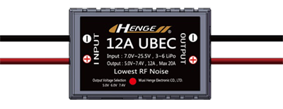 12安培UBEC是一种外置式稳压装置,它以开关电源的模式(Switch Mode)工作。该UBEC可以从7-25.5的输入中获得适合接收机和其它设备工作的直流电压,并稳定地提供高达12A的输出电流以便为接收机、陀螺仪和多只舵机等设备供电,因此非常适合大型电动固定翼飞机和使用4S以上锂电的电动直升机使用。利用这款设备,您就可以直接从动力电源取得接收机所需的电力,而不必再配备独立的接收机电池组。 产品规格: